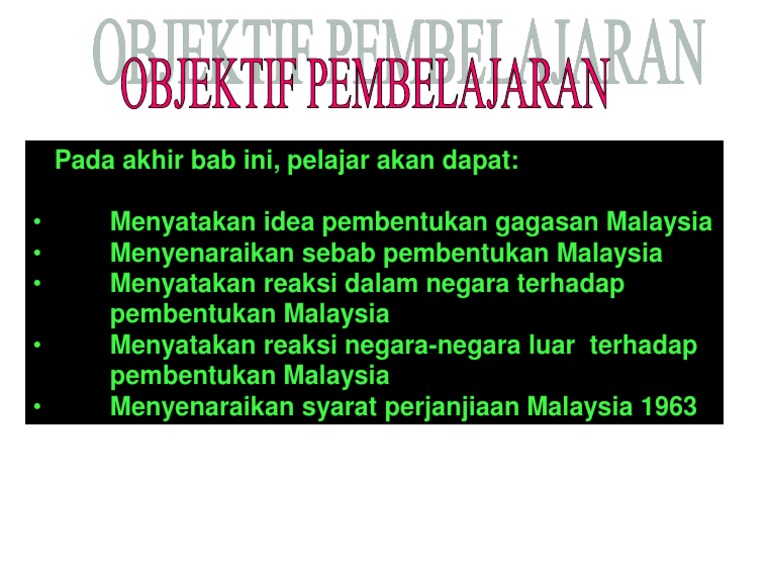 Usaha pembentukan malaysia menimbulkan reaksi serta cabaran dari dalam negeri dan negara luar tetapi hal ini ditangani melalui pelbagai usaha. Reaksi negara jiran terhadap gagasan malaysia. Kemunculan negara berdaulat 31 ogos 1957. Interaksi sosial berpengaruh besar terhadap terbentuknya lembaga sosial masyarakat yang bersangkutan. Malayan union 1946 dan persekutuan tanah melayu 1948. Indonesia menyuarakan tentangan dan konfrontasi dengan melaungkan slogan 'ganyang malaysia'. Proses pembentukkan malaysia pada 16 september 1963 telah membuatkan semua penduduk malaysia melalui pelbagai rintangan, dan cabaran sebelum menjadi sebuah negara yang berdaulat. Terhadap cadangan penyatuan borneo utara yang melibatkan brunei,sabah dan sarawak yang dipanggil menteri luar iaitu dr subandrio pernah menyatakan dalam akhbar new york times pada 13 nov. Pemerintah pusat memegang kedaulatan sepenuhnya, baik ke dalam maupun ke luar. Negara kesatuan adalah negara bersusunan tunggal, yakni kekuasaan untuk mengatur seluruh daerahnya ada di tangan pemerintah pusat. Reaksi indonesia pada peringkat awal, pemerintah indonesia tidak menunjukkan sebarang reaksi terhadap pembentukan malaysia. Dua aspek ini merealisasikan pembentukan persekutuan malaysia mengikut asas dan kerangka yang dipersetujui bersama oleh british, tanah. Cadangan pembentukan malaysia • dikemukakan oleh tunku abdul rahman pada 27 mei 1961 semasa menghadiri persidangan persatuan wartawan luar negeri asia tenggara di singapura faktor;